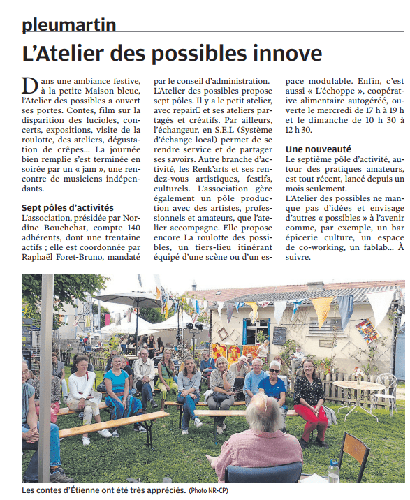 La Région Nouvelle-Aquitaine accompagne L’Atelier des Possibles au titre du soutien à la création de tiers-lieux.